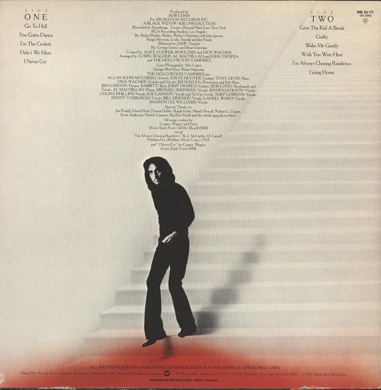 با موفقیت "Only Women Bleed" از اولین تلاش انفرادی خود، آلیس با تصنیف های راک در این آلبوم ادامه داد. "من هرگز گریه نمی کنم" در مورد مشکل الکل او نوشته شد، که در یک سال اجرا کننده را به بازتوانی فرستاد و بر تمام موسیقی های بعدی او تا و از جمله DaDa 1983 تأثیر گذاشت. کوپر این آهنگ را "اعتراف الکلی" نامید.