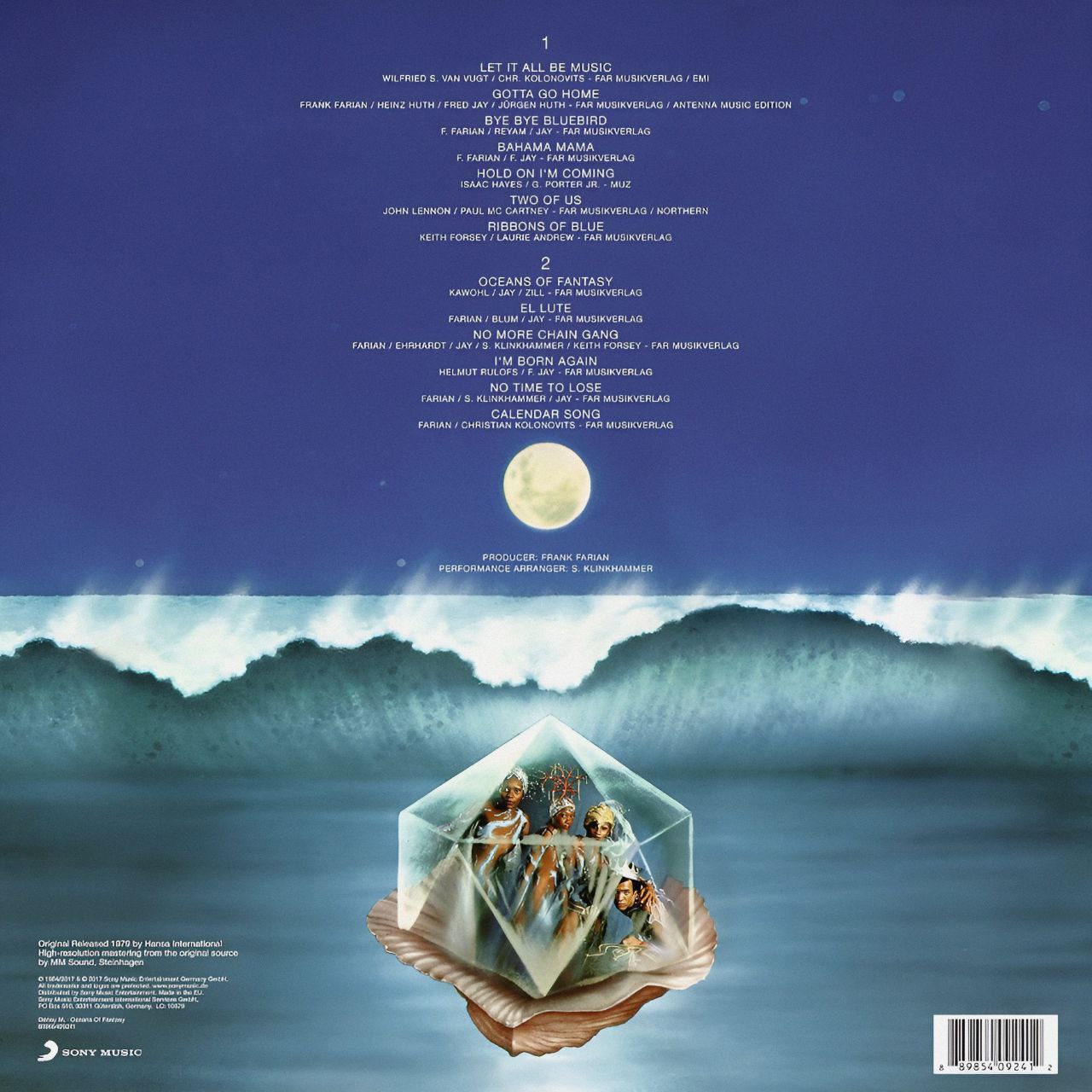 "Oceans Of Fantasy"، منتشرشده در 1979 و بازنشر شده در 2017 توسط Vinyl Passion، یکی از پرفروشترین آثار Boney M. است که حس شادی و انرژی دیسکو را منتقل میکند. قطعات مانند "El Lute" (با داستان واقعی یک زندانی) و "Gotta Go Home" با ریتمهای پرجنبوجوش، از بهترینهای آلبوم هستند. "Bahama Mama" و "Hold On I'm Coming" (کاور Sam & Dave) تنوع را نشان میدهند. کیفیت صدای وینیل 180 گرمی، با ریمسترینگ واضح، جزئیات بیس و وکالها را به خوبی حفظ میکند، اما برخی کاربران از نویز سطحی یا کیفیت پرس متوسط در نسخههای 2017 گزارش دادهاند (امتیاز میانگین 3.8/5 در Discogs). بستهبندی گیتفولد با پوستر داخلی، ارزش کلکسیونی بالایی دارد. این آلبوم برای طرفداران دیسکو و کلکسیونرهای وینیل ضروری است.