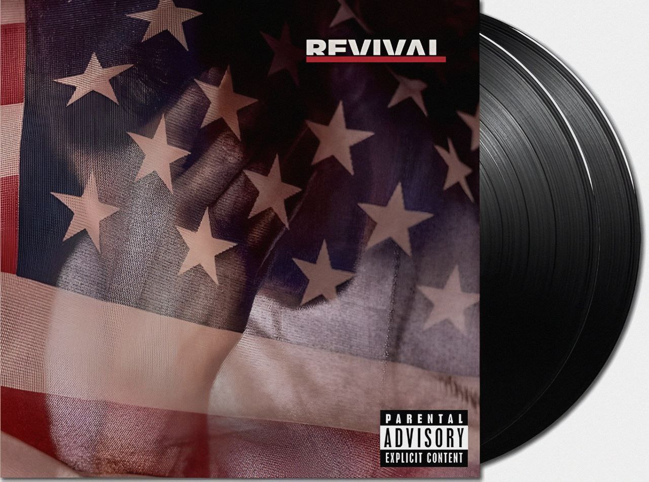 "Revival"، منتشرشده در 15 دسامبر 2017 توسط Aftermath Entertainment، Shady Records و Interscope Records، نهمین آلبوم Eminem است که با ترکیبی از رپ سیاسی و احساسی، به موضوعاتی مانند اعتیاد، خانواده و جامعه میپردازد. قطعات مانند "Walk On Water" (با Beyoncé) و "River" (با Ed Sheeran) از نکات برجسته با ملودیهای گیرا و اشعار عمیق هستند. "Chloraseptic" و "Untouchable" انرژی رپ کلاسیک را منتقل میکنند. کیفیت صدای وینیل 140 گرمی، با مسترینگ واضح، جزئیات رپ و بیتها را به خوبی حفظ میکند، اما برخی کاربران از نویز سطحی یا کیفیت پرس متوسط گزارش دادهاند (امتیاز میانگین 4.2/5 در Discogs). بستهبندی گیتفولد با طراحی ساده، ارزش کلکسیونی متوسطی دارد. این آلبوم برای طرفداران هیپهاپ، رپ و کلکسیونرهای وینیل جذاب است، اگرچه منتقدان از تنوع ناهماهنگ آن انتقاد کردهاند.