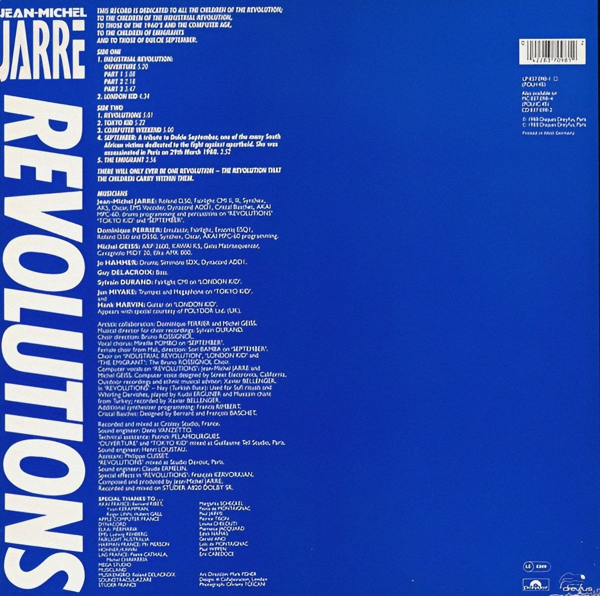 Jean-Michel Jarre (متولد 24 اوت 1948 در لیون، فرانسه)، آهنگساز، نوازنده و پیشگام موسیقی الکترونیک، یکی از تأثیرگذارترین هنرمندان ژانر الکترونیک و نیو ایج است. او کار خود را در دهه 1970 با آلبوم "Oxygène" (1976) آغاز کرد که بیش از 15 میلیون نسخه فروخت و استاندارد جدیدی برای موسیقی الکترونیک تعیین کرد. Jarre با آلبومهایی مانند "Équinoxe" (1978)، "Magnetic Fields" (1981) و "Zoolook" (1984) به شهرت جهانی رسید و با کنسرتهای عظیم در مکانهای تاریخی (مانند پاریس، مسکو و قاهره)، میلیونها نفر را جذب کرد. او با بیش از 85 میلیون آلبوم فروختهشده، رکوردهای گینس برای بزرگترین کنسرتهای تاریخ و جوایز متعدد، بهعنوان "پدر موسیقی الکترونیک مدرن" شناخته میشود. "Revolutions" با ترکیب موسیقی شرقی و الکترونیک غربی، یکی از خلاقانهترین آثار اوست و نشاندهنده علاقه Jarre به فرهنگهای مختلف است.