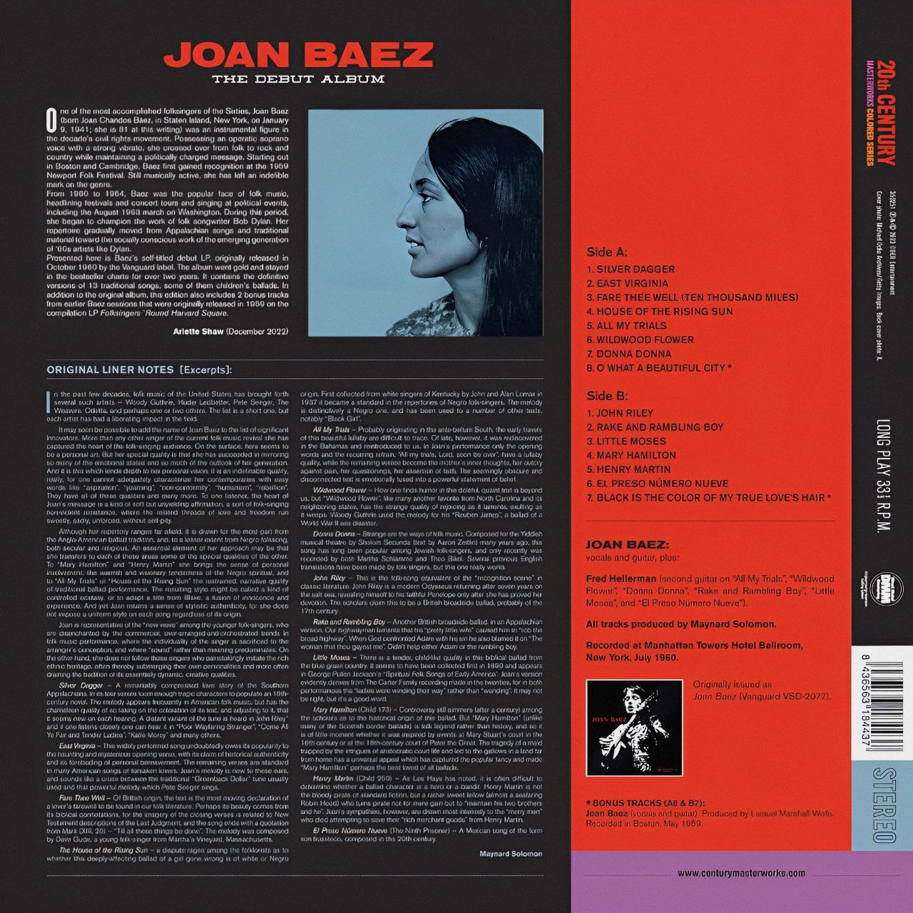 آلبوم Debut Album از Joan Baez در سال ۱۹۶۰ توسط Vanguard Records منتشر شد و به سرعت به یکی از آثار شاخص موسیقی فولک تبدیل شد. قطعاتی مانند Silver Dagger و House of the Rising Sun بیانگر صدای منحصربهفرد و سادگی هنری او هستند. این نسخه اختصاصی روی وینیل قرمز ۱۸۰ گرمی با کیفیت صوتی بالا منتشر شده و تجربهای نوستالژیک برای طرفداران موسیقی فولک به ارمغان میآورد.