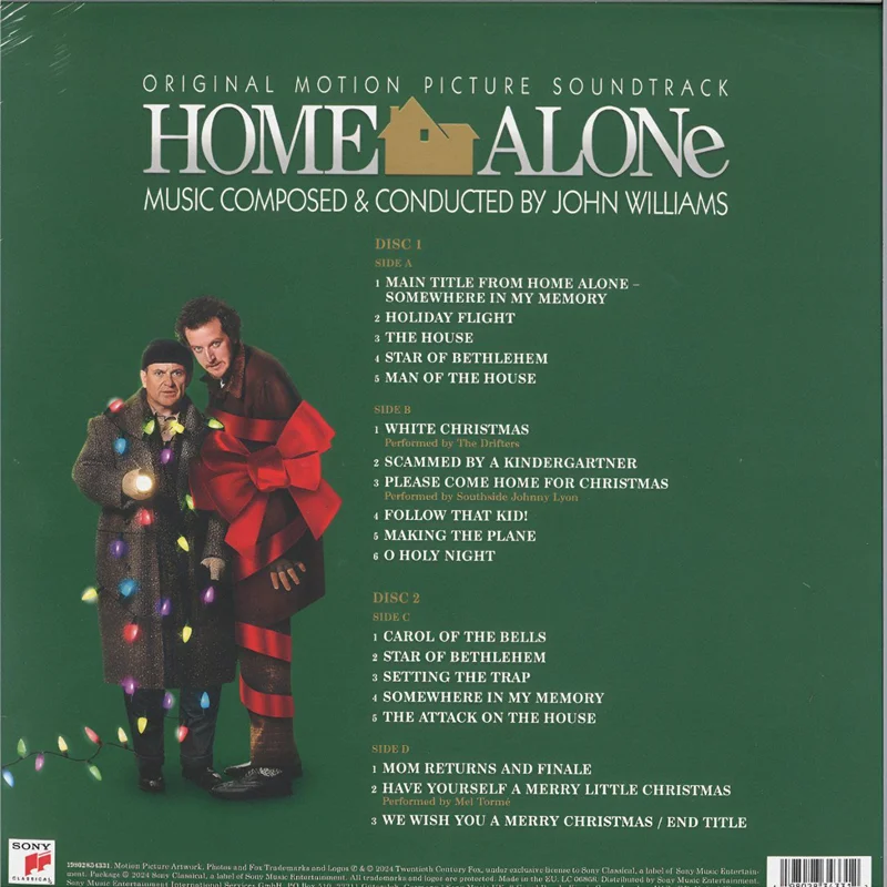 "Home Alone"، منتشرشده در 1990 و بازنشر شده در 2024 بهصورت رد و گلد توسط La-La Land Records، موسیقی متن شاد و تعلیقی John Williams است که با "Main Title / Somewhere in My Memory" و "Carol of the Bells"، حس هالیدی و ماجراجویی را با ارکستراسیون غنی منتقل میکند. آهنگهای کلاسیک مانند "White Christmas" تنوع را افزایش میدهند. کیفیت صدای وینیل 180 گرمی رد و گلد، با ریمسترینگ واضح، جزئیات ارکستر را به خوبی حفظ میکند، اما برخی کاربران از نویز سطحی یا کیفیت پرس متوسط در نسخههای رنگی گزارش دادهاند (امتیاز میانگین 4.5/5 در Discogs). بستهبندی گیتفولد با تصاویر فیلم، ارزش کلکسیونی بالایی دارد. این آلبوم برای طرفداران هالیدی و کلکسیونرهای وینیل ضروری است.
