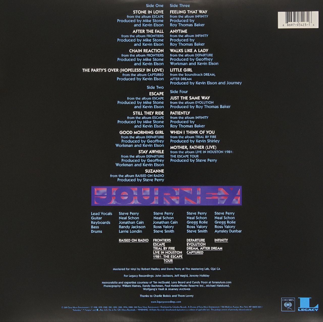 "Greatest Hits 2"، منتشرشده در 2011 و بازنشر شده در 2023، مجموعهای از بهترینهای Journey است که با "Stone in Love" و "Still They Ride"، حس نوستالژیک راک دهه 80 را منتقل میکند. کیفیت صدای وینیل 180 گرمی، با ریمسترینگ واضح، جزئیات گیتار Schon و وکال Perry را به خوبی حفظ میکند، اما برخی کاربران از نویز سطحی یا کیفیت پرس متوسط گزارش دادهاند (امتیاز میانگین 4.5/5 در Discogs). بستهبندی گیتفولد، ارزش کلکسیونی بالایی دارد. این آلبوم برای طرفداران راک و کلکسیونرهای وینیل ضروری است.