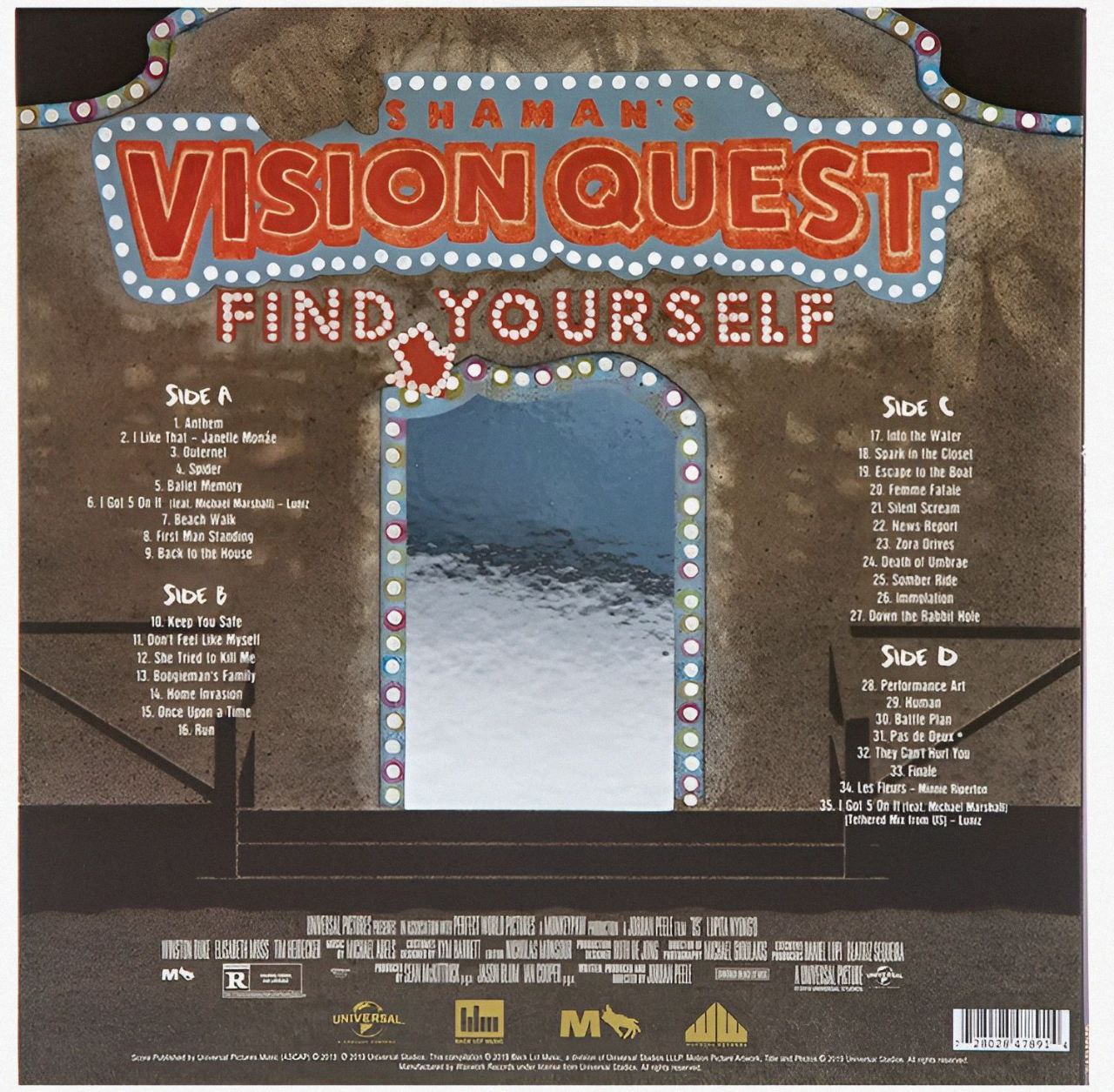 "Us"، منتشرشده در 2019 توسط Waxwork Records، موسیقی متن Michael Abels برای فیلم Jordan Peele است که با "Anthem" و "Tethered Mix from Us" (arrangement of Luniz's "I Got 5 On It")، حس ترسناک و duality را با choir و percussion منتقل میکند. کیفیت صدای وینیل 180 گرمی متالیک براس و تدرید رد، با ریمسترینگ واضح، جزئیات را به خوبی حفظ میکند، اما برخی کاربران از نویز سطحی در پرسهای colored گزارش دادهاند (امتیاز میانگین 4.5/5 در Discogs). interactive gatefold با art print، ارزش کلکسیونی بالایی دارد. این آلبوم برای طرفداران هورر و کلکسیونرهای وینیل ضروری است.