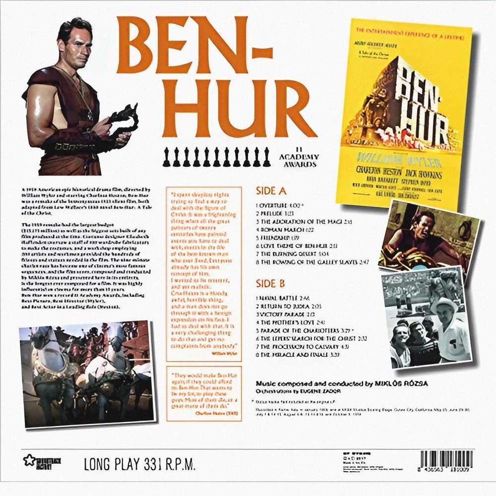"Ben-Hur"، منتشرشده در 1959 و بازنشر شده در 2017 بهصورت وینیل 180 گرمی گیتفولد توسط Film Music Foundation، یکی از حماسیترین موسیقی متنهای هالیوود است. قطعات مانند "Parade of the Charioteers" با ریتمهای پرشور و "The Miracle and Finale" با ملودیهای عاطفی، حس دراماتیک فیلم را منتقل میکنند. کیفیت صدای وینیل 180 گرمی، با ریمسترینگ واضح، جزئیات ارکستر و تمها را به خوبی حفظ میکند، اما برخی کاربران از نویز سطحی یا کیفیت پرس متوسط گزارش دادهاند (امتیاز میانگین 4.5/5 در Discogs). بستهبندی گیتفولد با تصاویر فیلم، ارزش کلکسیونی بالایی دارد. این آلبوم برای طرفداران موسیقی متن و کلکسیونرهای وینیل ضروری است.
