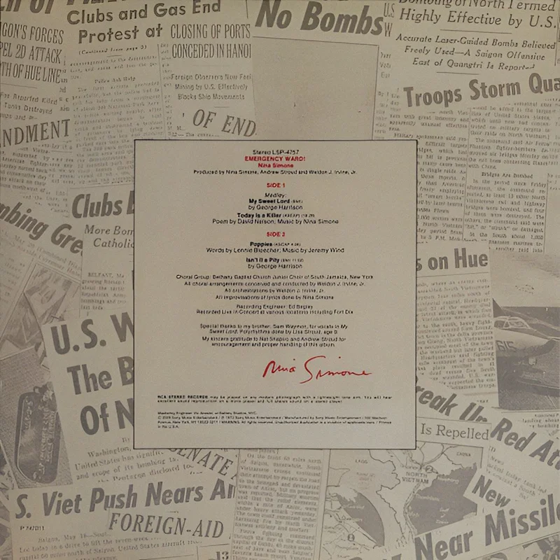 Nina Simone ، خواننده، ترانهسرا، پیانیست و فعال حقوق مدنی آمریکایی، ملقب به "High Priestess of Soul"، یکی از تأثیرگذارترین هنرمندان قرن بیستم است. او با صدای عمیق، پیانو کلاسیک و تلفیق جاز، سول، گاسپل و اعتراضی، به شهرت جهانی رسید. Simone کار خود را در دهه 1950 با Little Girl Blue (1958) آغاز کرد و با Emergency Ward (1972)، اعتراض به جنگ ویتنام را بیان کرد. Simone با فروش بیش از 10 میلیون آلبوم، جوایز متعدد از جمله Grammy Hall of Fame و National Recording Registry (2000) دریافت کرد و با آهنگهایی مانند "Feeling Good"، میراثی جاودانه بر جای گذاشت.