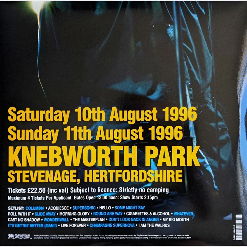 "Knebworth"، منتشرشده در 2021 توسط Big Brother Recordings، آلبوم زندهای از دو کنسرت اوج Oasis است که با "Wonderwall" و "Don't Look Back in Anger"، حس شور و نوستالژی بریتپاپ در سال 1996 را با صدای خام Liam و گیتارهای Noel منتقل میکند. کیفیت صدای وینیل 180 گرمی، با مسترینگ واضح، جزئیات وکال و گیتار را به خوبی حفظ میکند، اما برخی کاربران از نویز سطحی یا کیفیت پرس متوسط گزارش دادهاند (امتیاز میانگین 4.5/5 در Discogs). بستهبندی trifold sleeve با تصاویر زنده، ارزش کلکسیونی بالایی دارد. این آلبوم برای طرفداران بریتپاپ و کلکسیونرهای وینیل ضروری است.