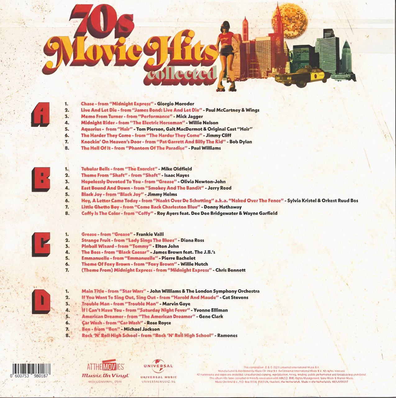 "s70' Movie Hits Collected"، منتشرشده در 2023 توسط Music On Vinyl، مجموعهای از هیتهای سینمایی دهه 70 است که حس شادی و نوستالژیک را با ملودیهای دیسکو، سول و راک منتقل میکند. قطعات مانند "Stayin' Alive" و "Gonna Fly Now" از بهترینها هستند. کیفیت صدای وینیل 180 گرمی یلو و پینک، با ریمسترینگ واضح، جزئیات وکال و بیس را به خوبی حفظ میکند، اما برخی کاربران از نویز سطحی یا کیفیت پرس متوسط در نسخههای رنگی گزارش دادهاند (امتیاز میانگین 4.5/5 در Discogs). بستهبندی گیتفولد با inner sleeves چاپی، ارزش کلکسیونی بالایی دارد. این آلبوم برای طرفداران موسیقی فیلم و کلکسیونرهای وینیل ضروری است.
