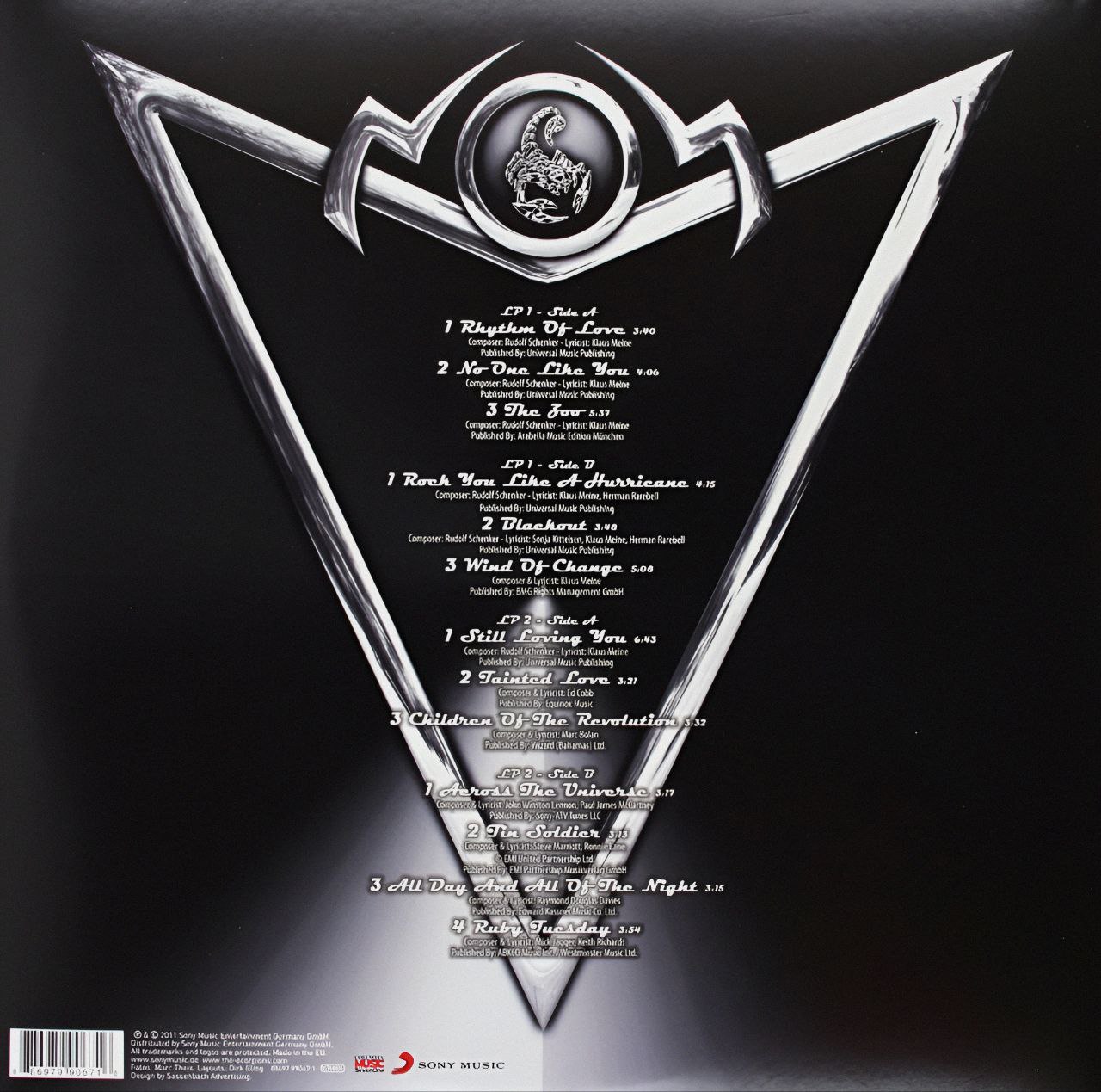 "Comeblack"، منتشرشده در 2011 توسط Sony Music، مجموعهای از بازضبطهای هیتهای Scorpions و کاورهای کلاسیک است که حس نوستالژیک را با تولید مدرن ترکیب میکند. قطعات مانند "Wind of Change" و "Rock You Like a Hurricane" با انرژی تازه، و کاور "Tainted Love" (Soft Cell) از نکات برجسته هستند. کیفیت صدای وینیل 180 گرمی، با مسترینگ واضح، جزئیات گیتارها و وکال را به خوبی حفظ میکند، اما برخی کاربران از نویز سطحی یا کیفیت پرس متوسط گزارش دادهاند (امتیاز میانگین 4.0/5 در Discogs). بستهبندی گیتفولد با CD، ارزش کلکسیونی بالایی دارد. این آلبوم برای طرفداران هارد راک و کلکسیونرهای وینیل ضروری است.