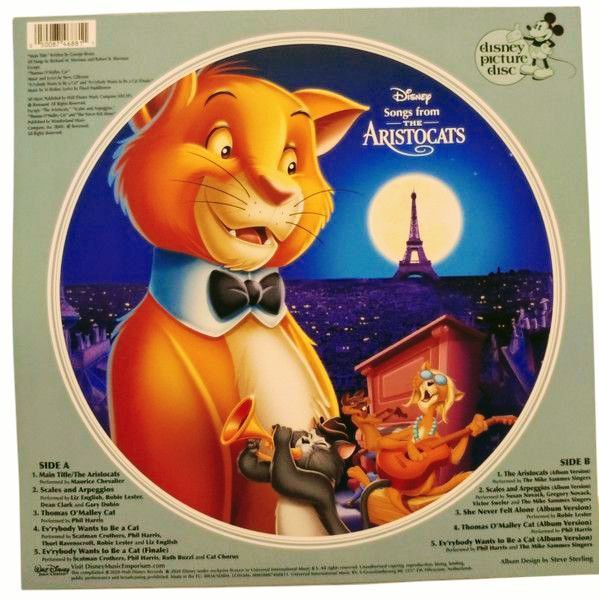 "Songs From The Aristocats"، منتشرشده در 1970 و بازنشر شده در 2020 بهصورت Picture Disc توسط Walt Disney Records، مجموعهای شاد از موسیقی متن "The Aristocats" است که حس ماجراجویانه و موسیقیایی فیلم را با ملودیهای جاز و پاپ منتقل میکند. قطعات مانند "Ev'rybody Wants to Be a Cat" و "Thomas O'Malley Cat" با اجراهای خاطرهانگیز، برای تمام سنین جذاب هستند. کیفیت صدای Picture Disc، با ریمسترینگ واضح، جزئیات وکال و سازها را به خوبی حفظ میکند، اما برخی کاربران از نویز سطحی یا popping در Picture Disc گزارش دادهاند (امتیاز میانگین 4.5/5 در Amazon). بستهبندی Picture Disc با تصاویر انیمیشن، ارزش کلکسیونی بالایی دارد. این آلبوم برای طرفداران دیزنی و کلکسیونرهای وینیل ضروری است.
